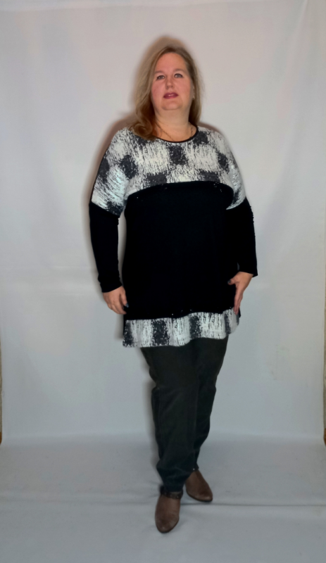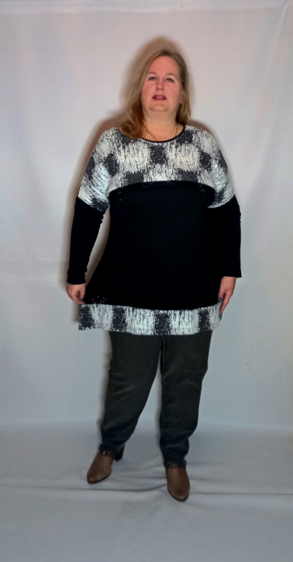 Стильная туника выполнена из трикотажного полотна с высоким содержанием вискозы и трикотажа "альпака".