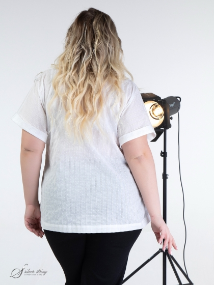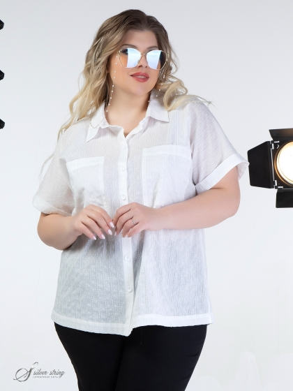 Легкая блуза-рубашка прямого силуэта выполнена из фактурной, однотонной, хлопковой ткани. Модель с рубашечным воротником на стойке и застежкой на пуговицы. Просторный рукав длиной до локтя, с отворотом по низу. На полочке настрочены нагрудные карманы. Это классическая, элегантная и, в то же время, универсальная модель, подходящая для разных случаев жизни. Она прекрасно впишется в Ваш гардероб и станет незаменимой при создании разнообразных комплектов.