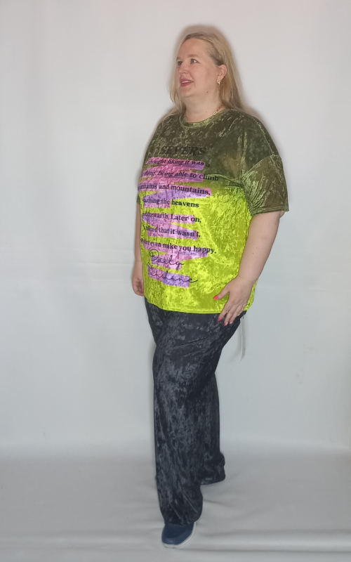 Брюки выполнены из мраморного велюра. Ткань средней плотности, эластичная, очень приятная к телу.