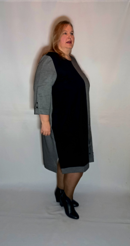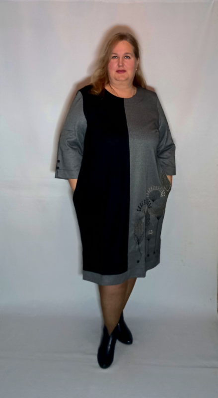 Платье выполнено из плотного трикотажа двух видов : однотонный и с рисунком. Трикотаж приятный, умеренно эластичный