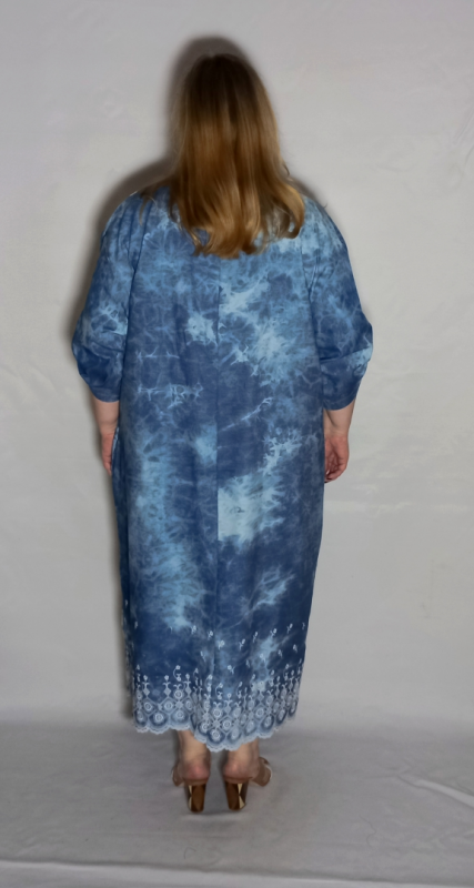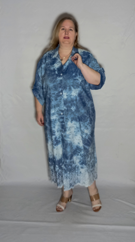 Шикарное   платье из  облегченной, рубашечной джинсы с эффектом "варенки"  и вышивкой по низу платья и рукавов.