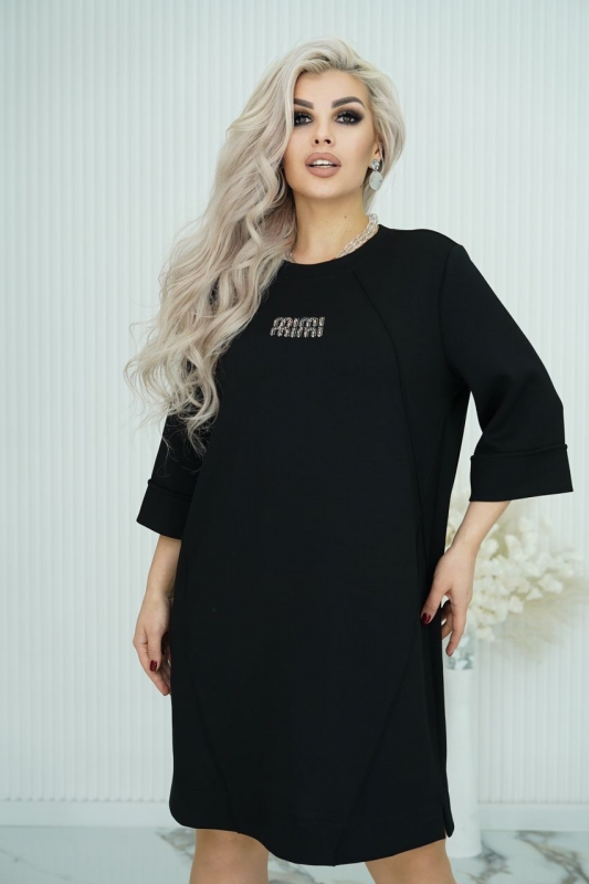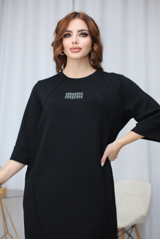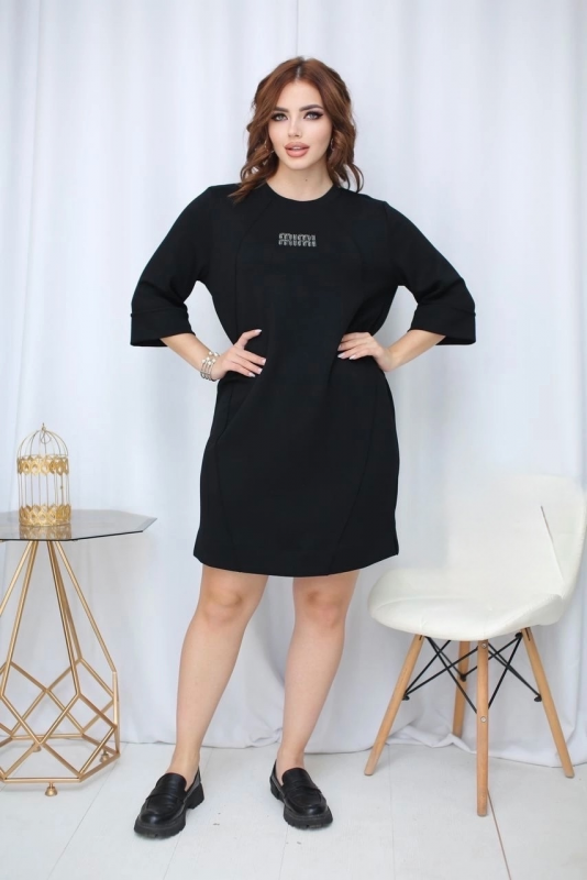 Лаконичное, но элегантное платье туника выполнено из плотного трикотажа. Трикотаж очень приятный  наощупь, плотненький, хорошо скрывает шероховатости фигуры, эластичный.