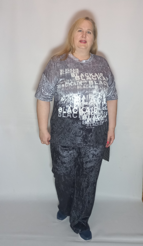 Шикарная туника- футболка выполнена из мягкого, очень эластичного мраморного велюра с рисунком.
